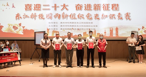 近日,以“喜迎二十大、奮進新征程”為主題,由惠州仲愷高新區東江科技園綜合黨委主辦的東江科技園“兩新”組織(新經濟組織、新社會組織)黨史知識競賽拉開帷幕,園區黨委及福日電子成員企業邁銳光電在內的14支兩新組織黨支部參加競賽。經過緊張激烈的角逐,邁銳光電黨支部代表隊喜獲第三名的優異成績。