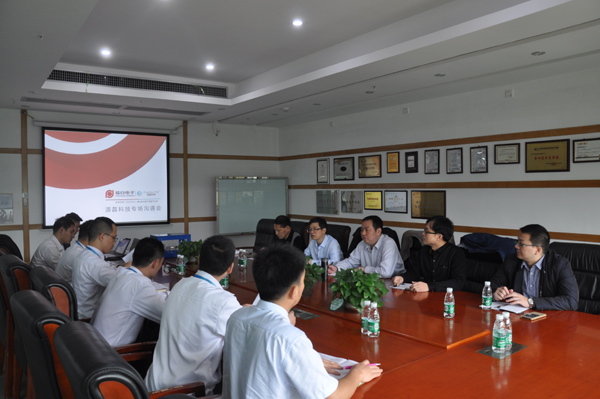 2017年425-26日,福日電子本部組織相關人員赴中諾通訊、源磊科技、邁銳光電召開品牌和企業文化建設交流座談會。福日電子黨委書記李震、副總裁蔡登峰出席會議并講話。