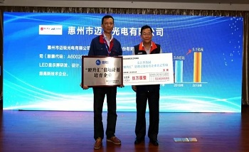 2018年4月18日,東江科技園“瞪羚匯”倍增計劃啟動暨首批培育企業授牌儀式在惠州市舉辦,園區管委會領導及各相關部門負責人、園區企業主要負責人等約100多人參加本次活動。福日電子成員企業惠州市邁銳光電有限公司等13家企業入選“瞪羚匯”倍增計劃培育企業?;葜葸~銳常務副總經理陳曉斌上臺領取了培育企業牌匾和培育經費支票。