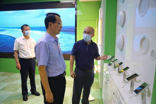 檢查前,鄭志鋒一行參觀了福日電子產品展示廳,詳細了解了福日電子的主營產品;駐足企業宣傳欄,詢問了福日電子企業文化建設和黨員先鋒示范崗作用發揮情況。