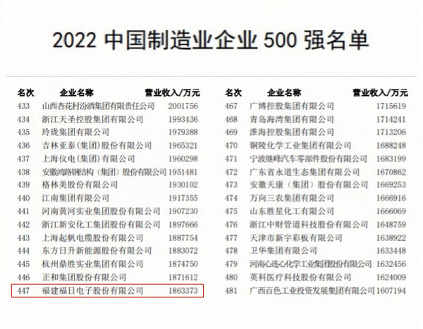 首次上榜!福日電子入圍中國制造業企業500強