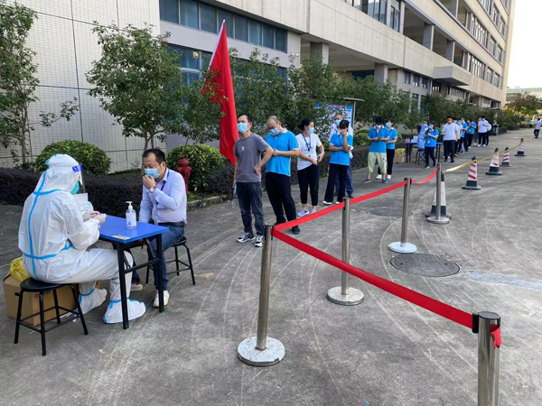 為統籌企業發展和疫情防控工作,11月29日,在廣東惠州仲愷高新區全區全員核酸檢測中,福建福日電子股份有限公司成員企業惠州市邁銳光電有限公司首次采用自主核酸采樣模式,邁銳光電黨支部組織的青年志愿者化身采樣員,讓員工們在廠區內即可進行核酸檢測,筑牢疫情防控防線的同時,也讓采樣更加方便快捷。