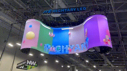 展會首日,邁銳光電展區人潮涌動,其獨具匠心的產品設計與卓越的顯示效果瞬間抓住了觀展者的目光——戶外mini箱體、RAS柔性租賃系列、機械波浪屏和可移動折疊車載屏等新品,展現了公司深厚的創新能力和專業實力,令人印象深刻,流連忘返。首次亮相的戶外mini箱體FS-DU系列,重新定義了戶外固定安裝顯示技術,以其靈活巧妙的設計和無縫拼接能力,吸引現場觀眾駐足體驗和廣泛贊譽。此外,巨型吊裝的柔性租賃RAS系列,憑借獨特的曲面造型和柔性模組技術,提供了趣味性極強的觀賞視覺,成為展會的一大亮點。